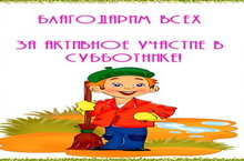 22.04.2017 г. проводился городской субботник по благоустройству прилегающих территорий. Для того, чтобы наш город стал чистым и ухоженным был выполнен большой объем работы всеми участниками образовательных отношений нашего детского сада. С территории учреждения был вывезен мусор в объеме 6 м3, очищены газоны, приведены в порядок клумбы. Администрация МБДОУ «Детский сад № 7 «Рябинушка» выражает благодарность сотрудникам и родителям, принявшим участие в наведении порядка на территории ДОУ. Благодаря Вашей ответственности и добросовестности садик стал чистым, уютным и благоустроенным.