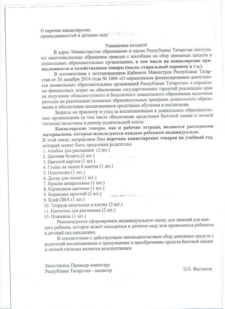 Письмо МО и Н РТ о запрете сбора денежных средств