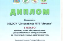 Наш детский сад занял 1 место в промежуточном этапе республиканского конкурса-акции по сбору отработанных источников тока. Все группы проявили активное участие в данной акции,собрав в общей сложности 55,9 кг батареек. Заключительный этап пройдет летом и мы постараемся приложить все усилия, чтобы удержать данную позицию!!!