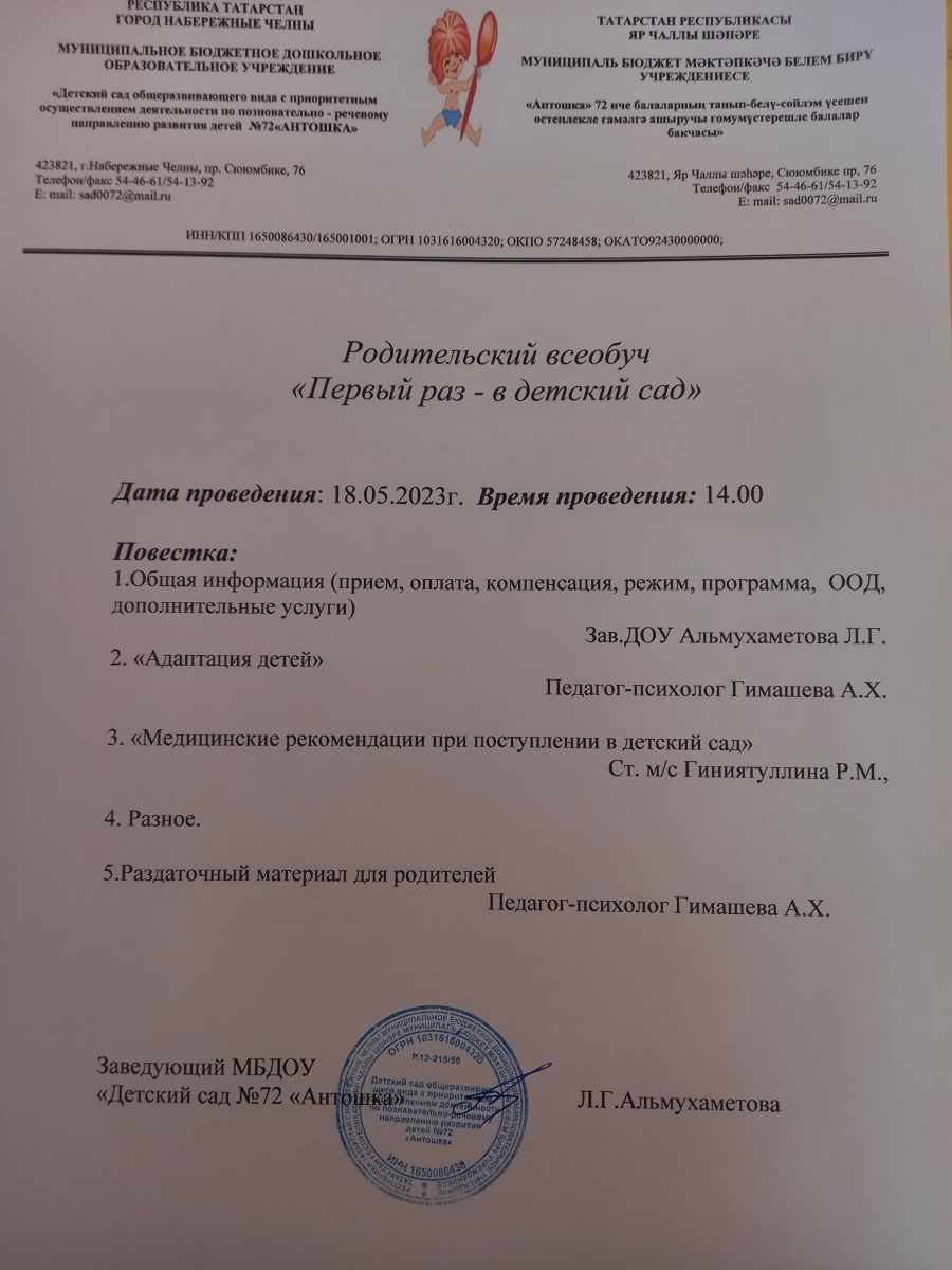 Муниципальное бюджетное дошкольное образовательное учреждение «Детский сад общеразвивающего вида с приоритетным осуществлением деятельности по познавательно-речевому направлению развития детей №72 «Антошка» / Яр Чаллы шәһәренең "Антошка 72 нче балаларның танып-белү-сөйләм үсешен өстенлекле гамәлгә ашыручы гомүмүстерешле балалар бакчасы" муниципаль бюджет мәктәпкәчә белем бирү учреждениесе