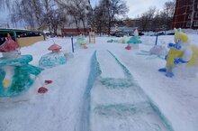 Снежный городок построили на радость детям творческая группа педагогов и работников нашего детского сада. Постройки способствуют не только физическому развитию детей, но и положительному эмоциональному настрою на двигательную активность во время прогулки.