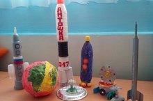 Тема космоса всегда интересна детям. Поэтому 12 апреля в день космонавтики воспитатели проводят тематические беседы, конкурсы, познавательные занятия на тему "Космонавтика". Украшением групп стали космические аппараты, сделанные руками детей и родителей.