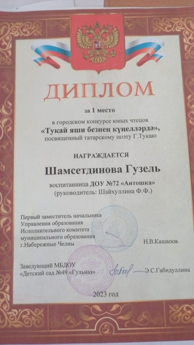 Муниципальное бюджетное дошкольное образовательное учреждение «Детский сад общеразвивающего вида с приоритетным осуществлением деятельности по познавательно-речевому направлению развития детей №72 «Антошка» / Яр Чаллы шәһәренең "Антошка 72 нче балаларның танып-белү-сөйләм үсешен өстенлекле гамәлгә ашыручы гомүмүстерешле балалар бакчасы" муниципаль бюджет мәктәпкәчә белем бирү учреждениесе