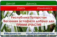 С 16 по 23 апреля 2016 г. - проведение республиканской добровольческой акции «Весенняя неделя добра - эстафета добрых дел #ДОБРЫЙ ТАТАРСТАН #МЭРХЭМЭТЛЕ ТАТАРСТАН» и республиканской акции «#Спортивный Татарстан».