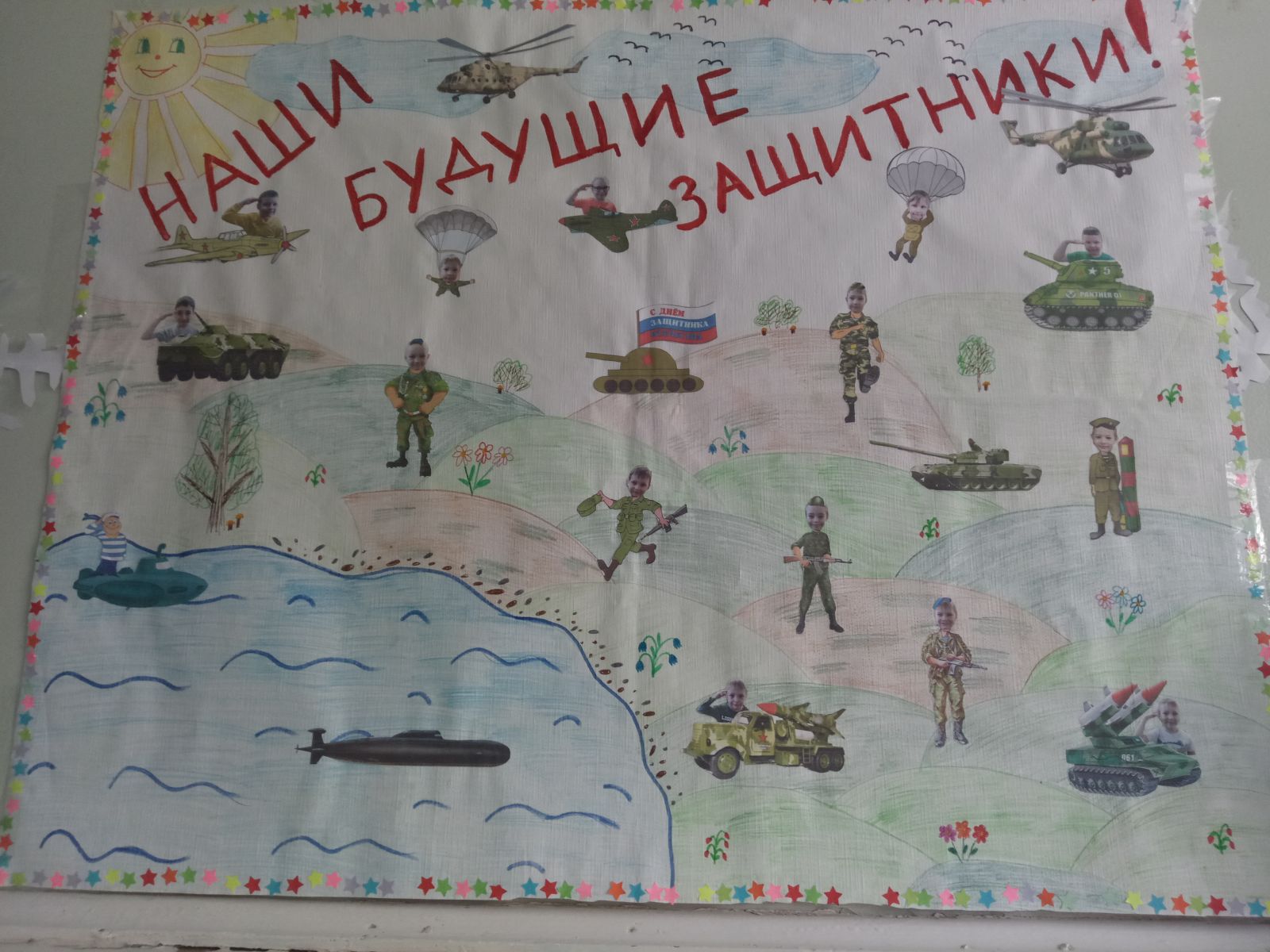 С детьми старших и подготовительных групп была проведена предварительная беседа о том, что 23 февраля наша страна отмечает праздник – День защитника Отечества. Дети получили знания, что это праздник всех военных, всех тех, кто защищает и охраняет нашу Родину.