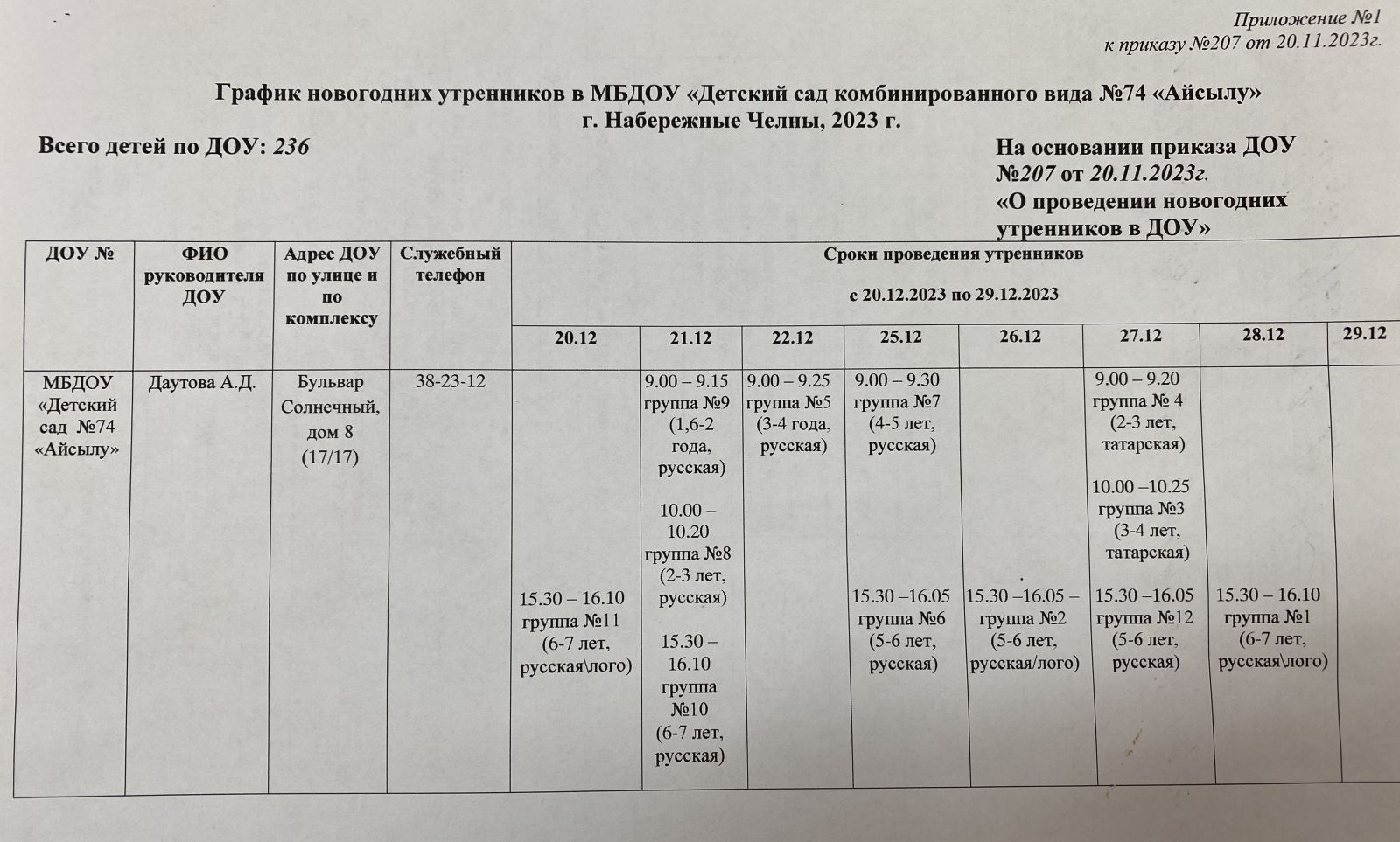 | Короткое название: | МБДОУ «Детский сад комбинированного вида №74 «Айсылу» города Набережные Челны |