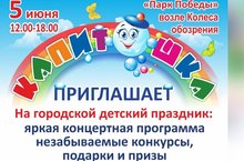 Уважаемые родители приглашаем вас 5 июня в 12.00 в Парк Победы возле Колеса обозрения на городской детский праздник "Капитошка" по мимо яркой программы с незабываемыми конкурсами и подарками вас ждет бесплатная консультация врачей:ортопеда, аллерголога, психолога, травматолога, педиатора и многих других врачей.