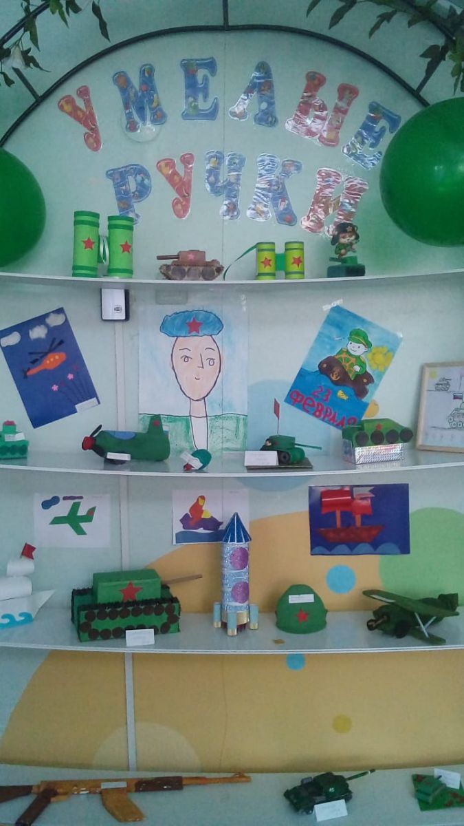 В ДОУ провели праздник "Наша Армия сильна, охраняет нас она", также по результатам конкурса оформлены выставки рисунков и поделок, посвященные Дню Защитника Отечества. Дети старших и подготовительных групп приняли участие в российских и региональных творческих конкурсах: "Защитник Родины моей", "Слава Армии Российской!"
