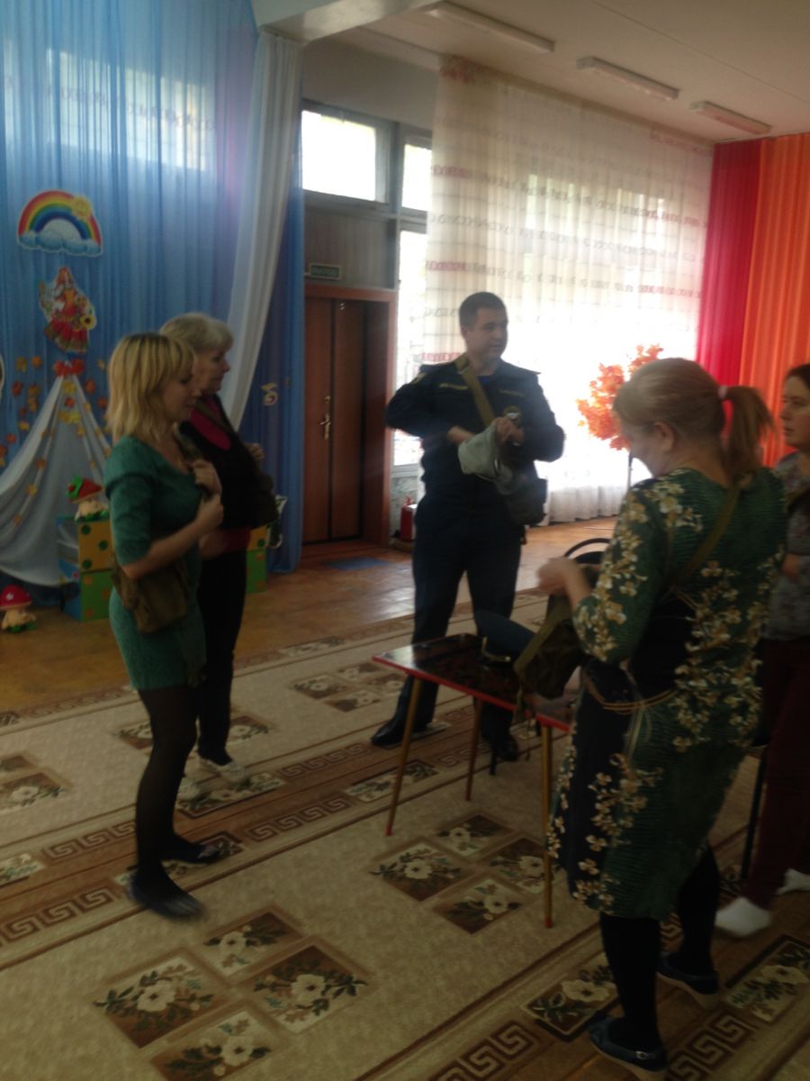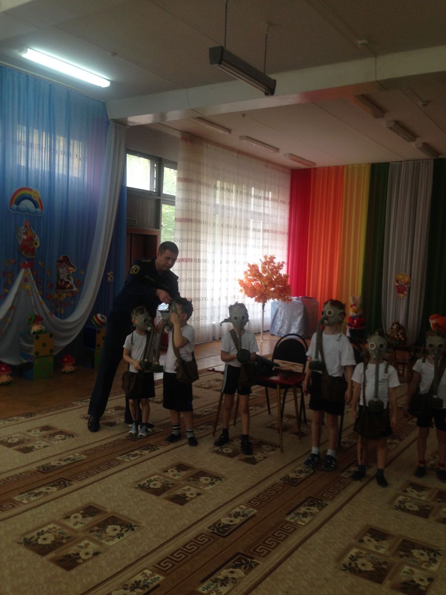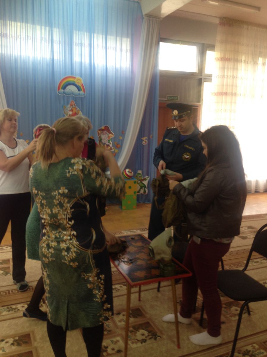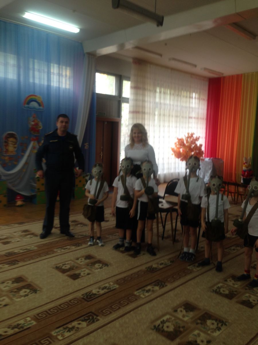 В детском саду прошло обучение персонала и воспитанников в области гражданской обороны и защиты от чрезвычайных ситуаций. В рамках данного обучения педагоги и дети ознакомились с инструкцией по эксплуатации противогаза, тренировались правильно надевать противогаз на время по команде «Газы»