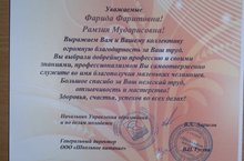 Наш детский сад был отмечен Благодарственным Письмом Начальника Управления образования и по делам молодежи В.Х Харисовым и генеральным директором ООО "Школьное питание" В.П. Гусевой за лучшую организацию и питание детей в дошкольном образовательном учреждении г. Набережные Челны.