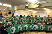 В течение 2017-2018 учебного года наш детский сад активно работал в международной программе "ЭКО-ШКОЛЫ ЗЕЛЕНЫЙ ФЛАГ" и был награжден флагом.
