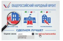 Общероссийский народный фронт реализует проект «Народная оценка качества» направленный на улучшение системы независимой оценки качества работы организаций социальной сферы посредством создания механизма личного участия граждан в их оценке.