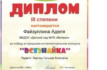 Поздравляем Файзуллину Аделю с призовым местом в конкурсе "Всезнайка" 06.03.2017