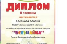 Поздравляем Хасанову Азалию с призовым местом в конкурсе "Всезнайка" 06.03.2017