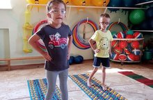 С первых занятий инструктор ЛФК заинтересовала ребят игровыми упражнениями на тренажерах и медицинском оборудовании.