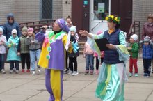 В нашем детском саду прошёл праздник, посвящённый "Дню защиты детей". Были игры, песни, танцы. Приходили сказочные герои. В конце праздника дети рисовали на асфальте мелками рисунки и пускали мыльные пузыри.