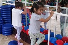 На занятиях инструктор лечебной физической культуры использует чудо-валик. Массажёр дети прокатывают в ладонях, перекатывают одной стопой. Такой массаж помогает улучшить кровоснабжение конечностей, является отличным средством профилактики плоскостопия, помогает укрепить иммунитет.