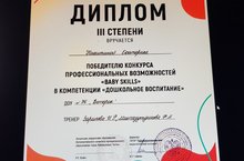 Поздравляем Никитину Екатерину с победой в конкурсе профессиональных возможностей "BABY SKILLS" в компетенции дошкольное воспитание!