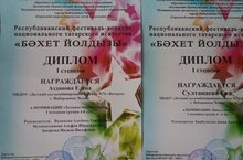 Наши воспитанники Азданова Елена, Султанаева Ева награждены дипломами 1 степени в номинациях: "Художественное слово" и "Вокал-соло". Поздравляем наших победителей!