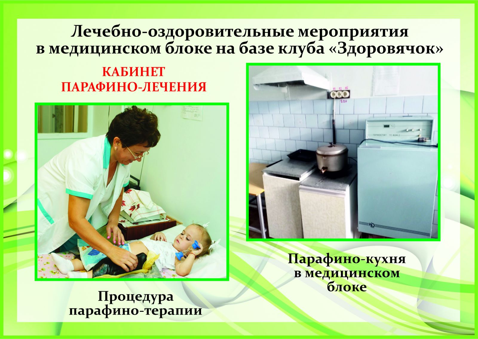 Лечебно-оздоровительные мероприятия в медицинском блоке на базе клуба "Здоровячок" - кабинет парафино-лечения