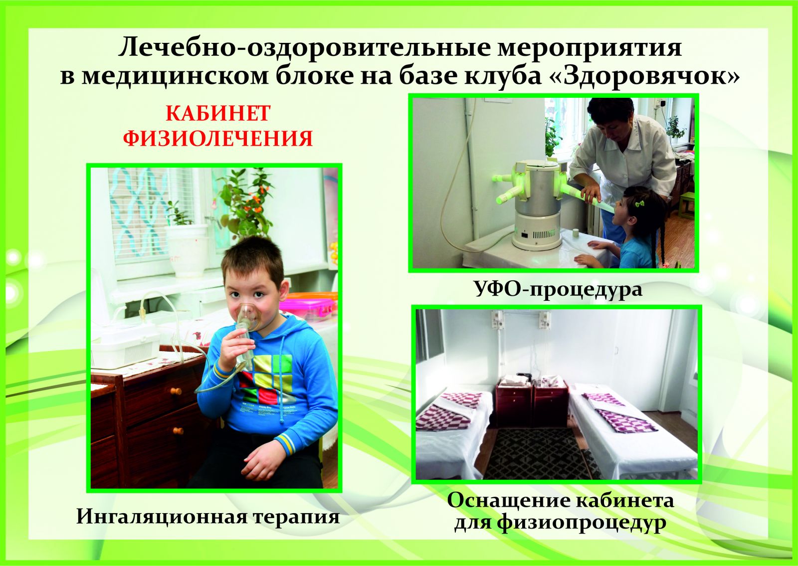 Лечебно-оздоровительные мероприятия в медицинском блоке на базе клуба "Здоровячок" - кабинет физиолечения