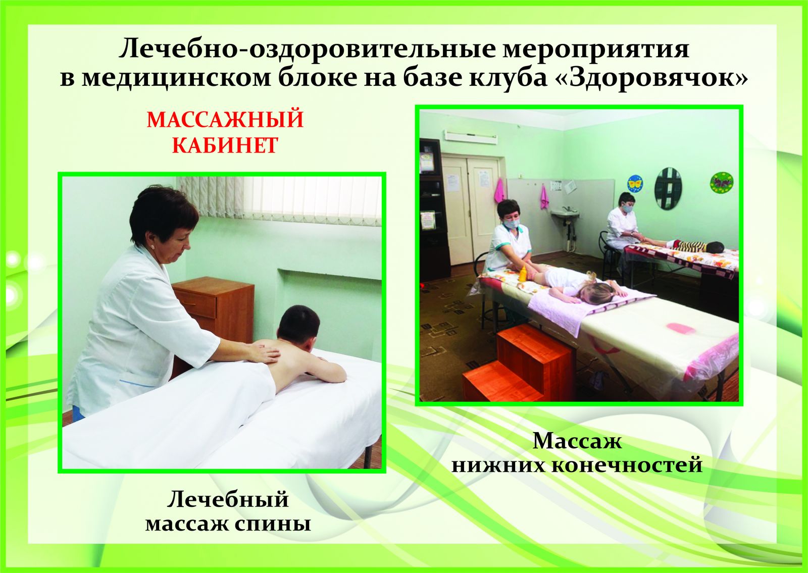 Лечебно-оздоровительные мероприятия в медицинском блоке на базе клуба «Здоровячок».