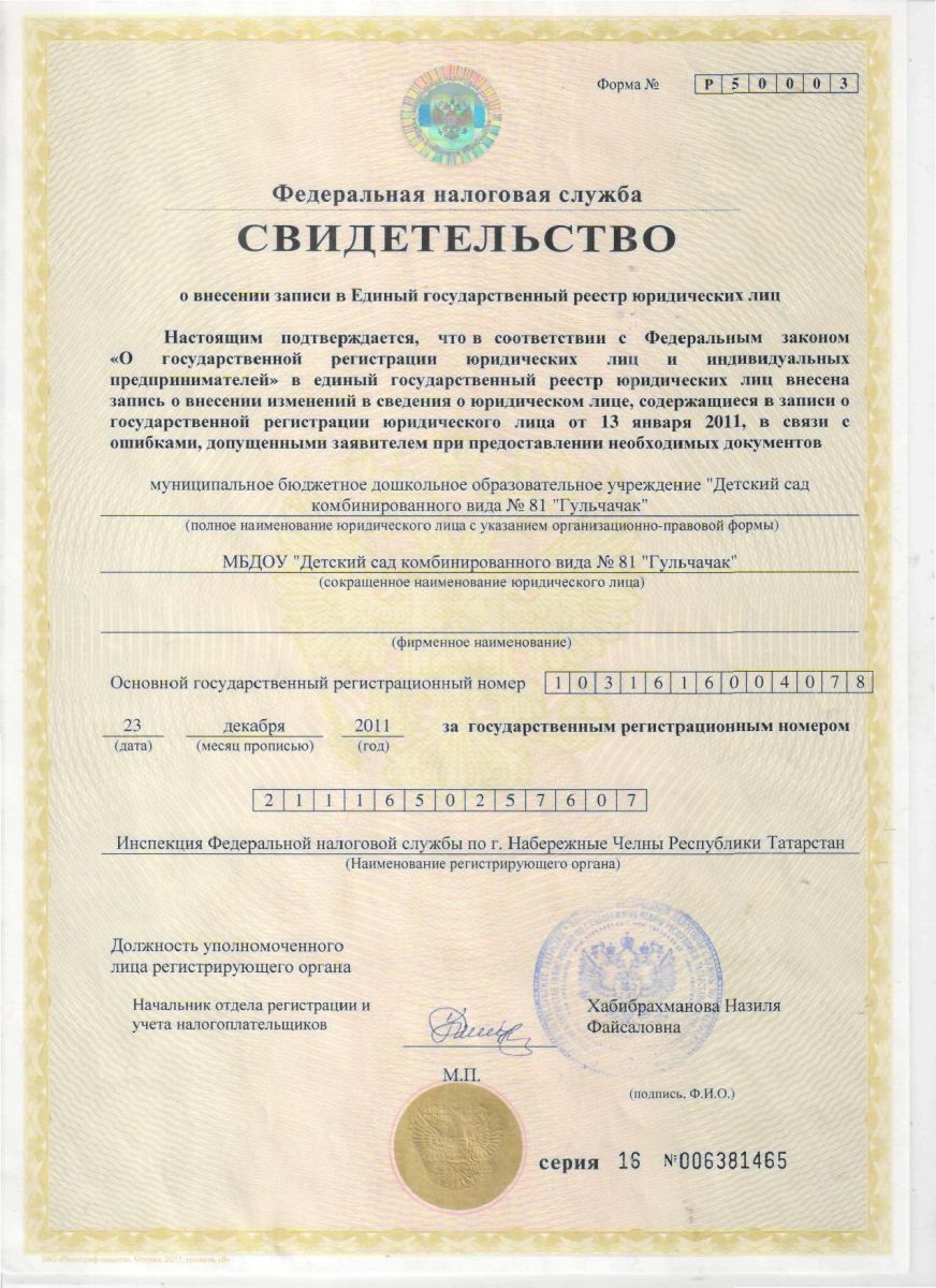 | Короткое название: | МБДОУ «Детский сад комбинированного вида №81 «Гульчачак» г.Набережные Челны» |