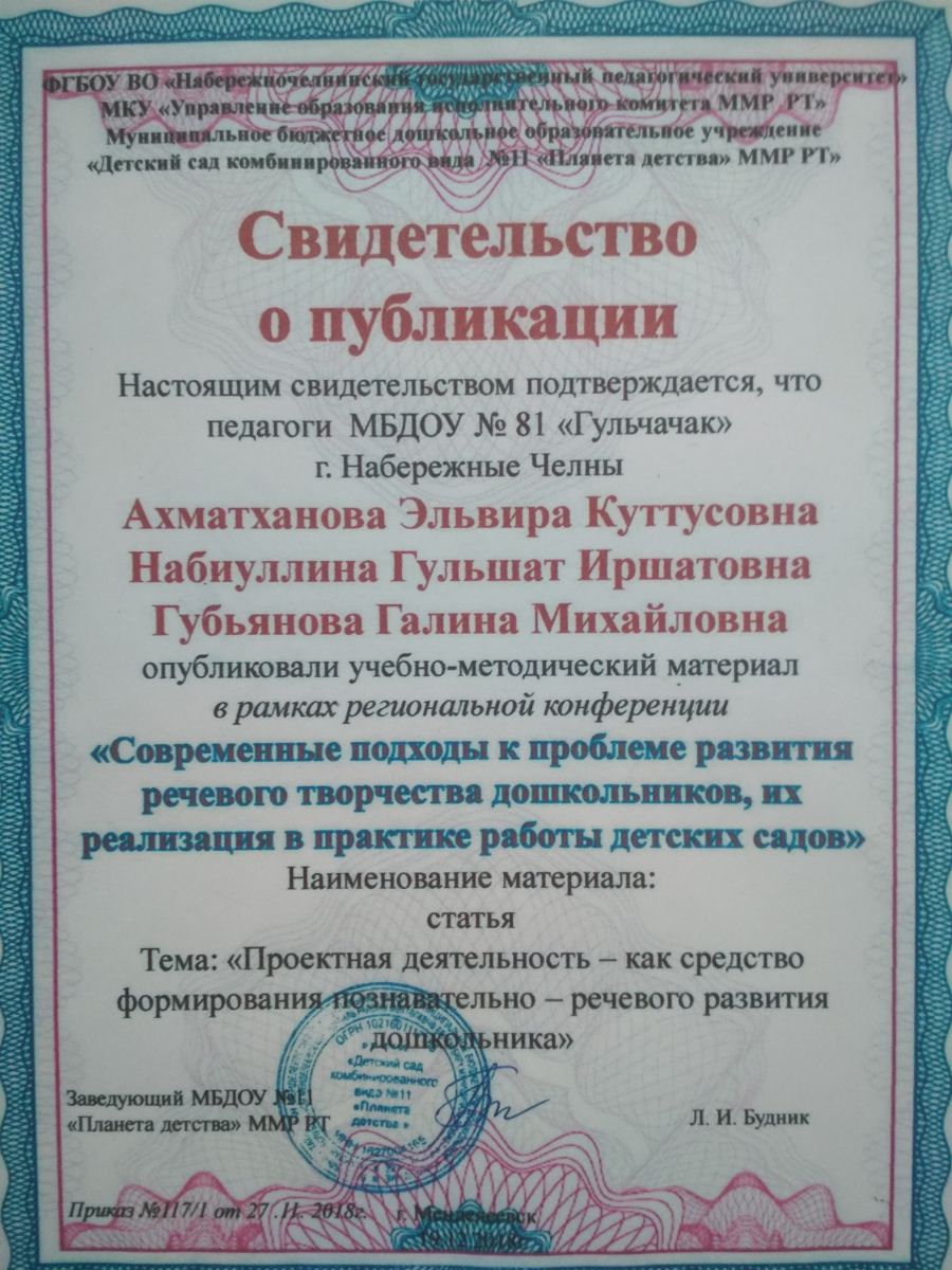 | Короткое название: | МБДОУ «Детский сад комбинированного вида №81 «Гульчачак» г.Набережные Челны» |