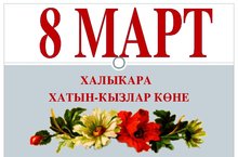 Барыбызга да билгеле әлеге айның иң матур иң олы бәйрәме — Сигезенче март — Халыкара хатын-кызлар көне.Хөрмәтле гүзәл затлар! Табигатнең суыктан җылылык чорына омтылган мизгеленә туры килгән бәйрәмегез һәрвакыт җылы матур истәлекләр генә калдырсын.
