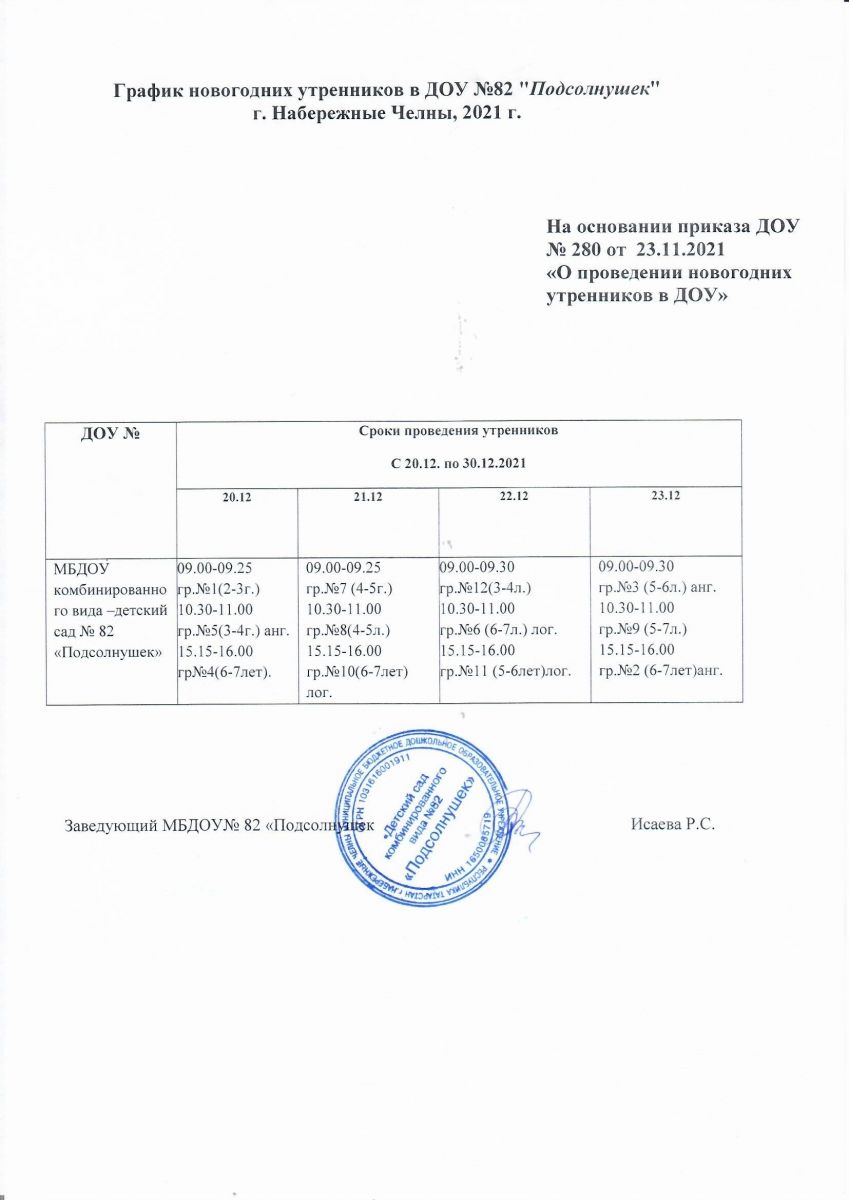 Хөрмәтле әти-әниләр, Яңа ел бәйрәменә багышланган иртәләр графигы белән танышыгыз.