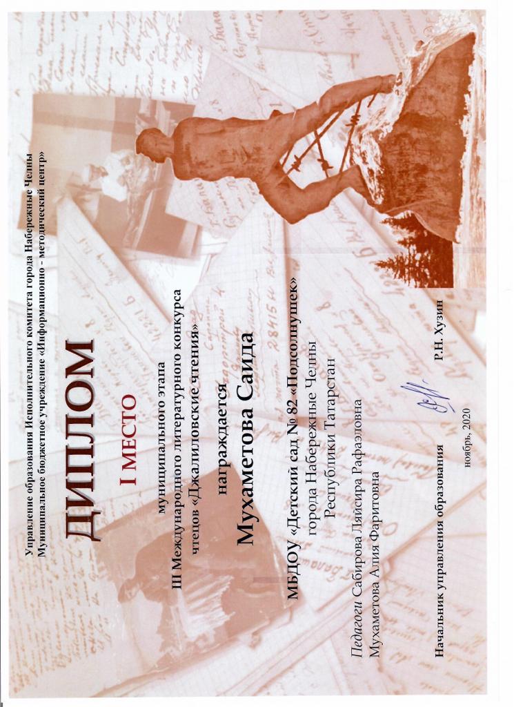 Мухаметова Сәйдәне III Халыкара “Җәлил укулары” әдәби бәйгесенең, Яр Чаллы шәһәрендәге муниципаль этабында җиңүе белән котлыйбыз! Яңадан-яңа уәышлар теләп калабыз! Сәйдәбезне әзерләгән педагогларыбызга зур рәхмәт!