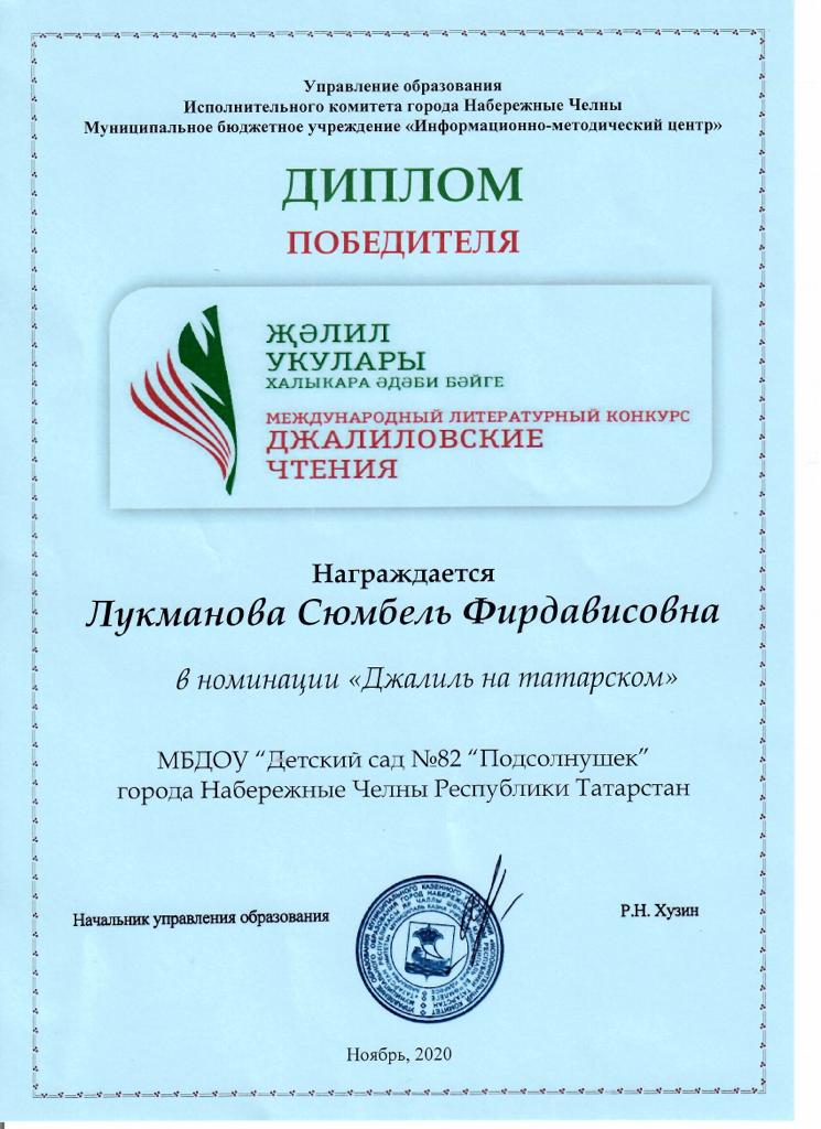 Яр Чаллы шәһәренең "Җәлил укулары" III халыкара әдәби конкурсында хезмәттәшебез Локманова Сөмбел Фирдәвис кызы җиңү яулады! Котлыйбыз! Уңышлар телибез!