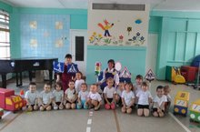 Сегодня в ДОУ №82 "Подсолнушек" прошло веселое развлечение "Азбука безопасности" с детьми средней группы №5 под руководством инструктора по ФК Квитковской Е.Ю. Воспитанники научили Карлсона правильно переходить дорогу, вести себя на проезжей части.