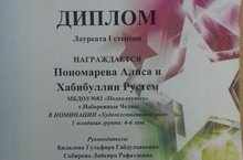 Мы поздравляем Пономареву Алису и Хабибуллина Рустема с дипломом I степени в конкурсе "Бәхет йолдызы". Руководители : Билалова Г.Г., Сабирова Л.Р.