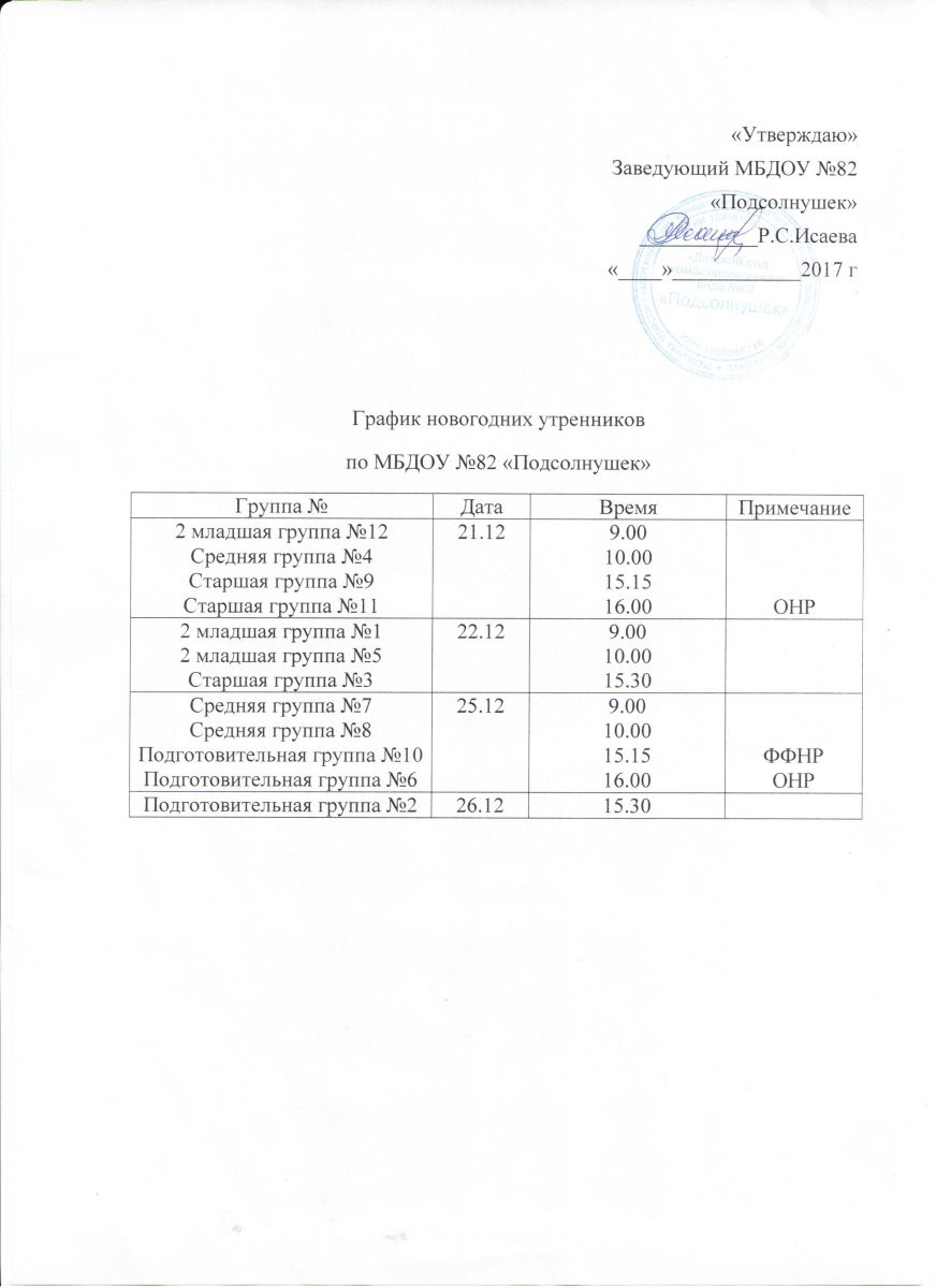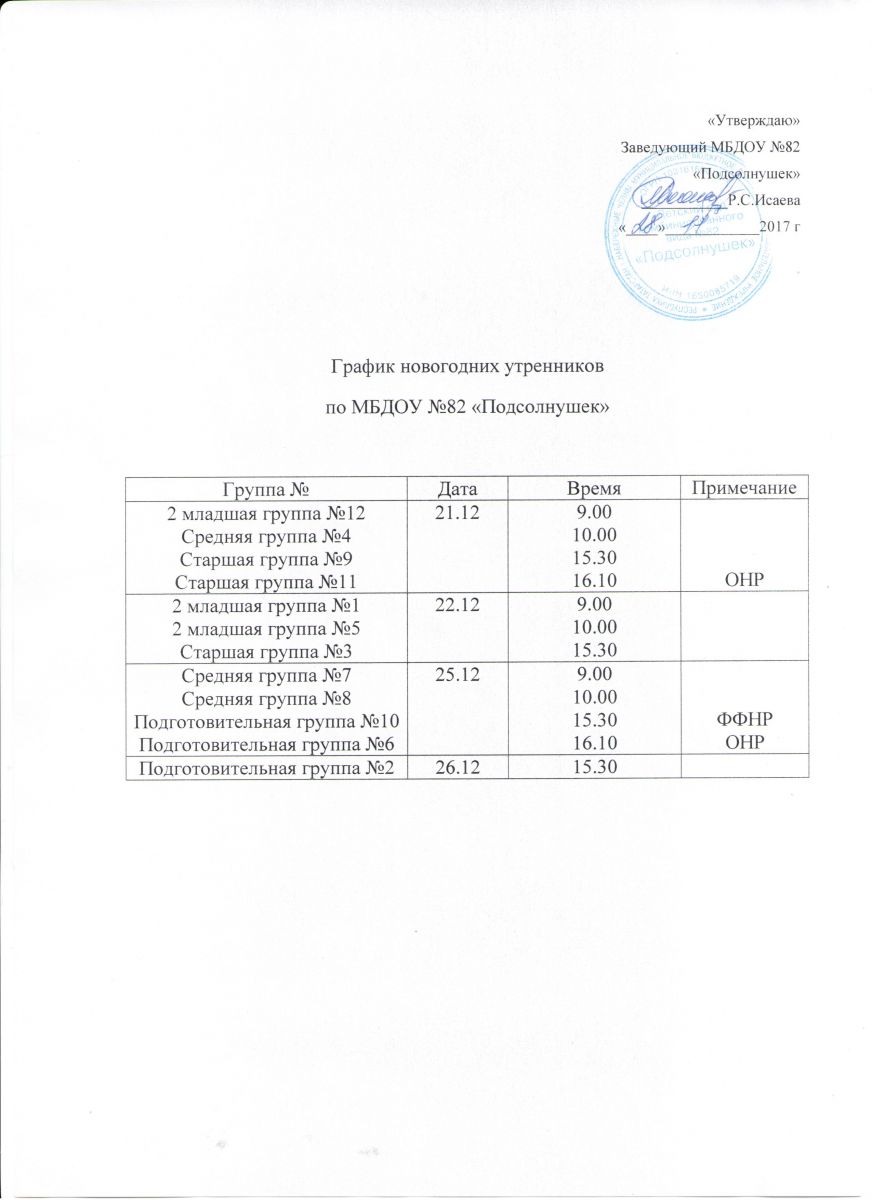 График новогодних утренников 29.11.2017