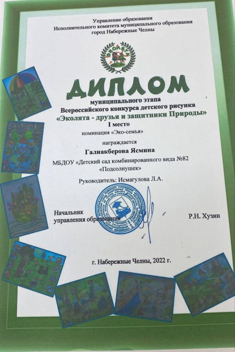 Всероссийский конкурс детского рисунка "Эколята - друзья и защитники Природы", диплом первой степени
