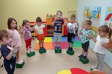Занятия проводятся индивидуально, тогда ребёнок выполняет упражнения стоя на балансире, и в группе, дети стоят на кирпичиках, что так же тренирует способность держать равновесие.