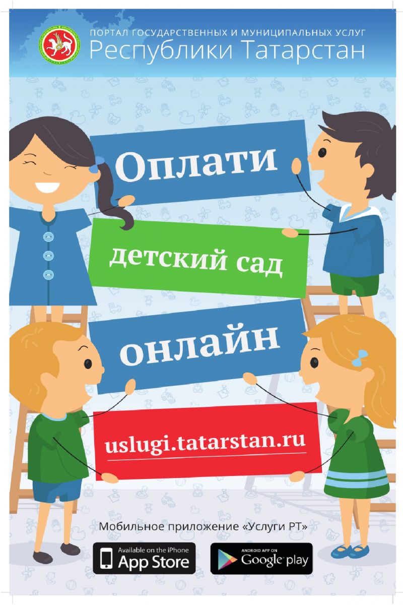 Опубликовано: 03.11.2016Оплатить детский сад онлайн можно на сайте www.uslugi.tatar.ru .