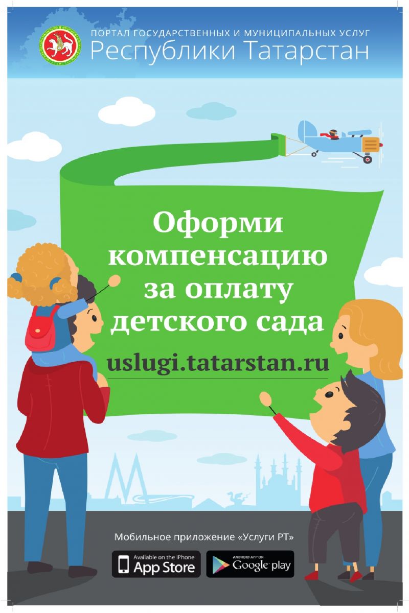 Опубликовано: 03.11.2016Оформить компенсацию за оплату детского сада можно на сайте www.uslugi.tatar.ru .