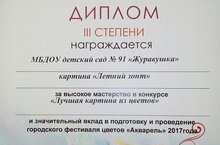 Коллектив нашего детского сада занял lll место на фестивали цветов «Акварель-2017»