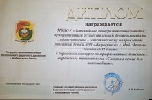 В городском конкурсе "Автомобильные обереги", проходивший на уровне деских садов воспитатель Первухина Марина Валентиновна заняла ll место.