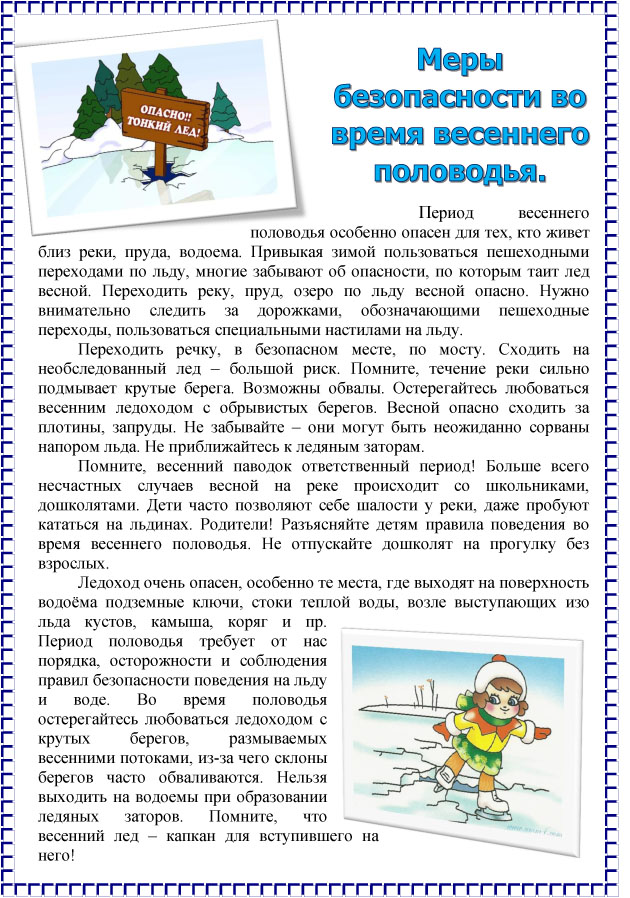 Опубликовано: 13.04.2017Большая профилактическая работа по обеспечению безопасности детей на водных объектах организована управлением образования и по делам молодежи Исполнительного комитета, учителями школ с проведением профилактических бесед, тематических выступлений, направленных на предотвращение несчастных случаев с детьми на водных объектах в период каникул, во время ледохода. Изданы приказы по общеобразовательным организациям города, проведены инструктажи.