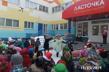 В нашем детском саду прошёл праздник "Широкая масленица". В гости к ребятам пришёл Снеговик. Он предложил детям поиграть в весёлые игры и позвать на праздник Навруз. Но вместо Весны пришла коварная Баба Яга и решила испортить праздник. Но, дети отняли у неё метлу, и взамен метлы Баба Яга согласилась вернуть Навруз. Пришла Весна и дети вместе с ней спели красивую песню на татарском языке "Яз килә". В благодарность, Весна принесла для всех малышей "маленькие солнышки" - блины и ребятати весело и задорно спели песню "Блины".