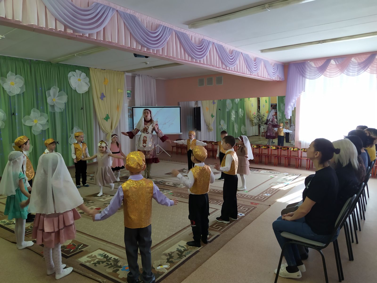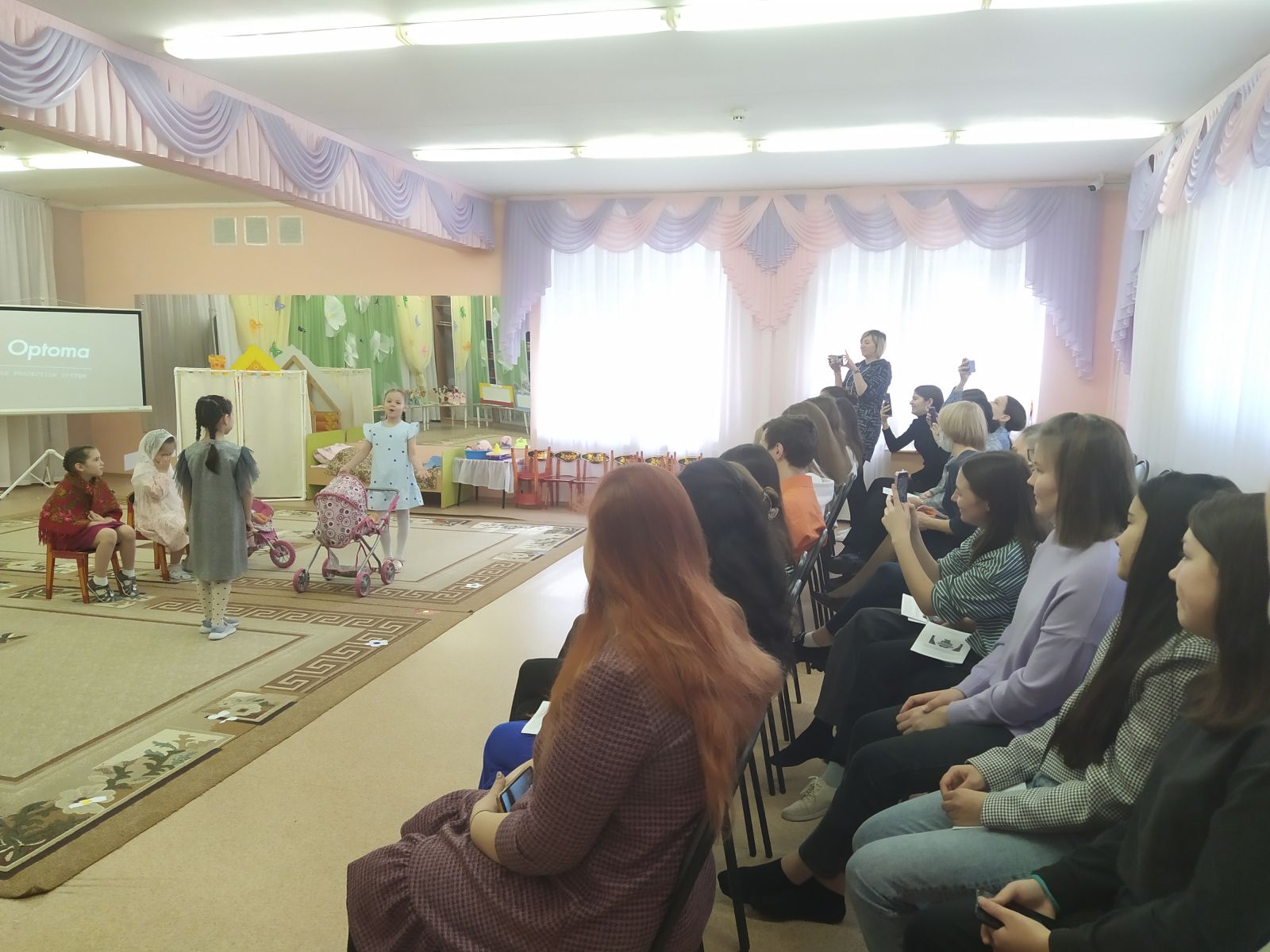 С целью повышения профессионального мастерства педагогов по закреплению татарского языка в режиме дня с 20.03- по 24.03.2023 г. прошла педагогическая неделя "Азбука билингвального общения". Педагог старшей татарской группы № 9 Перминова А.В. показала народные игры " Покажи-ка мне, дружок", "Чума үрдәк, чума коз" фото Воспитанники подготовительной группы № 11 "отпраздновали день рождения" в Кафе фото Дети средней группы № 10 под руководством Шаеховой Г.Ф. организовали речевую ситуацию "Наши друзья" фото. В средней группе № 6 воспитататель Шилкова О.А. организовала игру "Чудесный мешочек", где дети показали знания татарского языка по теме "Игрушки" фото Воспитатель старшей группы № 2 Алексеева С.О. показала педагогам как в режиме дня закреплять с детьми татарский язык в сюжетно-ролевой игре "Магазин" фото На таких мероприятиях педагоги со стажем демонстрируют свои умения, а начинающие воспитатели набираются педагогического опыта. Ссылка В контакте https://vk.com/wall-162611410_260