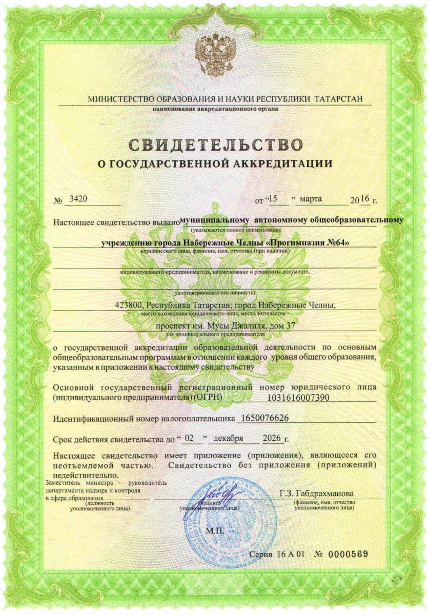 Муниципальное автономное общеобразовательное учреждение города Набережные Челны «Прогимназия №64». Яр Чаллы шәһәренең «64 нче прогимназия» муниципаль автономияле гомуми белем бирү учреждениесе.