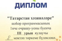 Шәһәребездә “Татарстан хәзинәләре” дип исемләнгән программа эшләп килә. Ул Татарстаның тарихын өйрәнүгә, тарихи, әдәби мирасыбызны саклауга, туган ягыбызның атаклы шәхесләрен танып белүгә юнәлдерелгән. 19 нчы октябрь көнне шушы программасының 1 нче туры булып узды. Мәктәбебезнең 5 нче һәм 6 нчы сыйныфы укучыларының җыелма командасы катнашып, 3 нче дәрәҗәле диплом белән бүләкләнде.