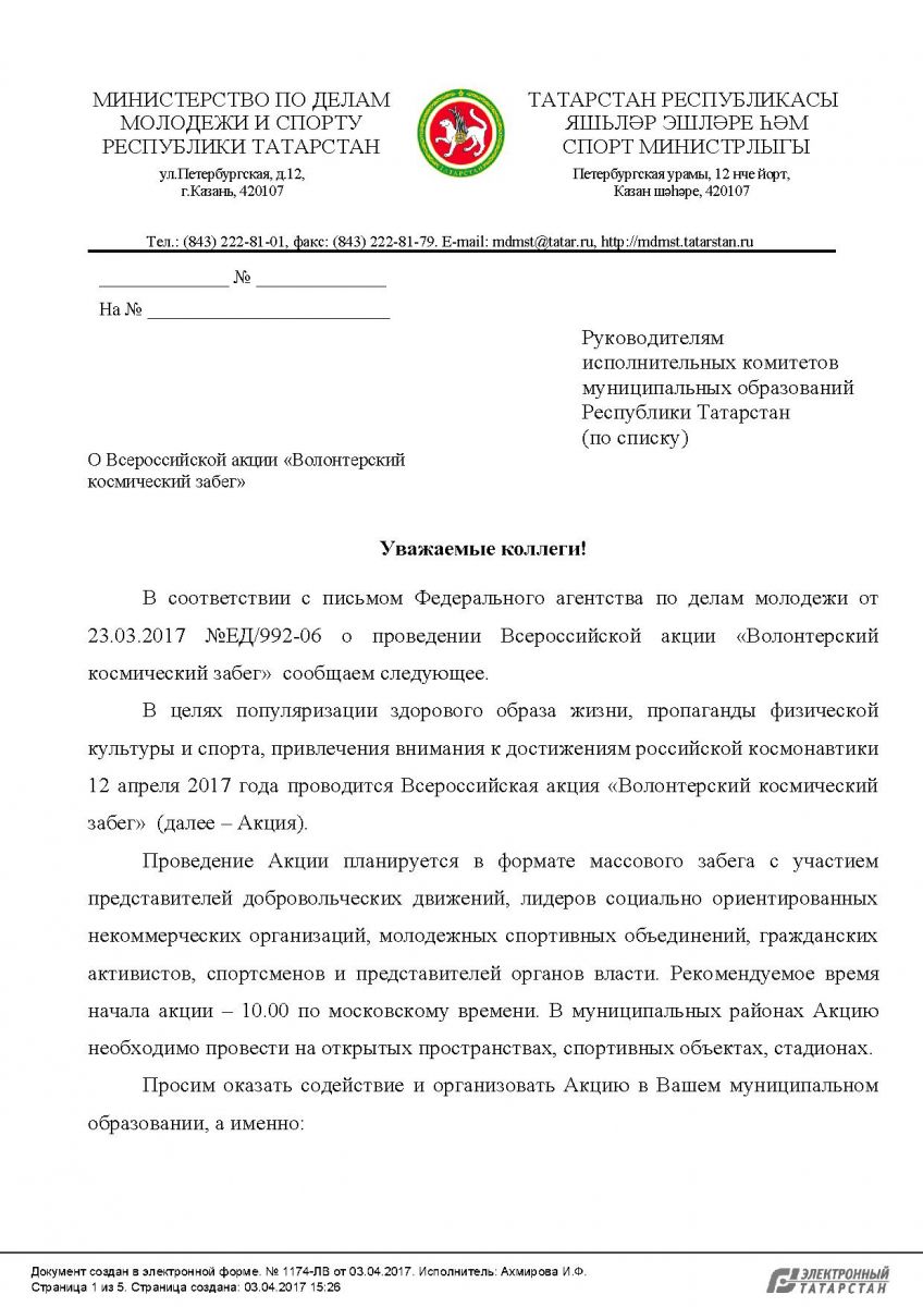 12 апреля 2017 года в городе Набережные Челны пройдёт городская акция «Космический забег в Набережных Челнах» в рамках Дня космонавтики. Организатором акции выступает Центр развития добровольчества города Набережные Челны и МАУ «Молодежный центр «Орион» при содействии управления образования и по делам молодежи Исполнительного комитета города Набережные Челны.
