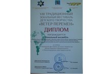 Вокальный ансамбль ГБОУ "Набережночелнинская школа №67" награждена дипломом за победу в зональном фестивале детского творчества "Ветер перемен" приуроченного к Международному дню защиты детей.