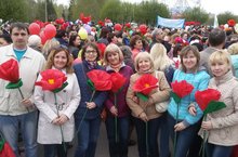 Педколлектив школы принял участие в праздничном шествии 1 Мая.