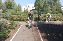 Цветочное озеленение территории школы проходит при помощи педагогов и обучающихся трудовой бригады.